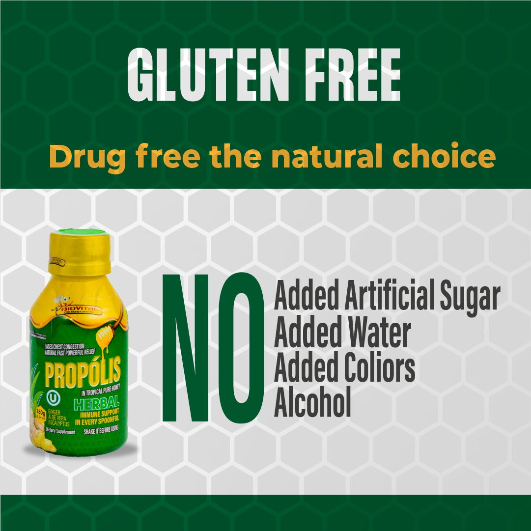 Propolis in Pure Tropical Honey Biovital Herbal fuses the healing virtues of propolis, ginger, aloe vera and eucalyptus with the sweetness of tropical honey, creating a delicious and powerful syrup for teenagers and adults. Certified Kosher, it is presented as a natural and reliable solution for family health.