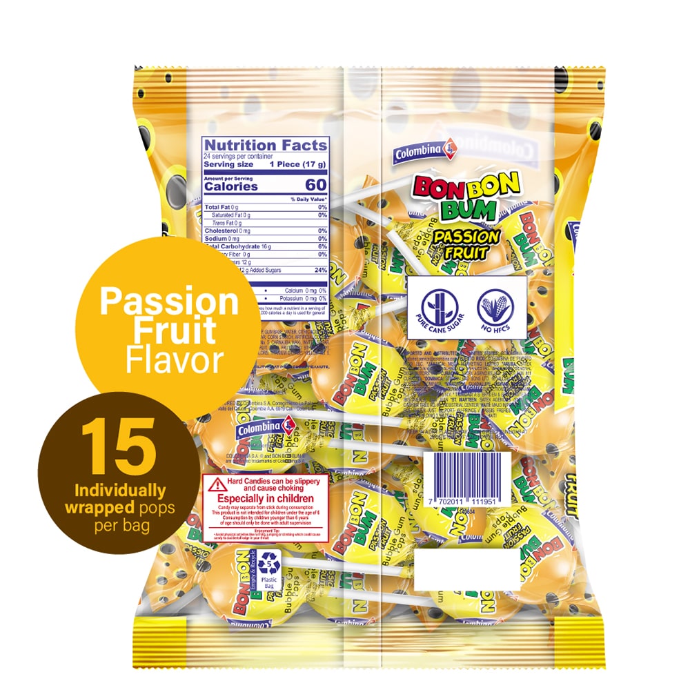 Bon Bon Bum - Sabor a Maracuyá - Bolsa X 24 Unidades